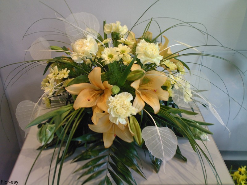 Zaprezentowane wiązanki tworzymy w kilku różnych kształtach: okrągła, podłużna, trójkątna, w kształcie rombu, oraz w różnych wielkościach, co decyduje o ich cenie. Wiązanka pogrzebowa może być wykonana na podkładzie z jodły, z różnych liści lub w formie bukietu. Wiązanki pogrzebowe układamy w gąbce florystycznej, która zapewnia kwiatom dostęp do wody. Do wiązanek możemy dołączyć czarną wstążkę, szarfę z gotowym napisem „Ostatnie pożegnanie” lub autorskim tekstem klienta.